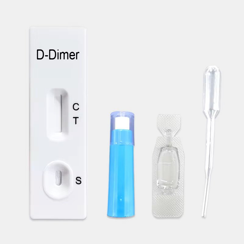 This kit is used for clinical in vitro qualitative detection of D-dimer in human plasma and whole blood(fingertip blood/venous blood).This product is for professi- onal use and in vitro diagnostic use only.D-dimer is a specific marker produced after fibrin is degraded. The increase in itscontent represents the frequent occurrence of fibrinolysis in the human body and predicts the prethrombotic state, thrombosis or secondary fibrinolysis.